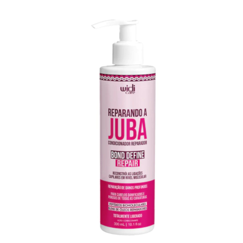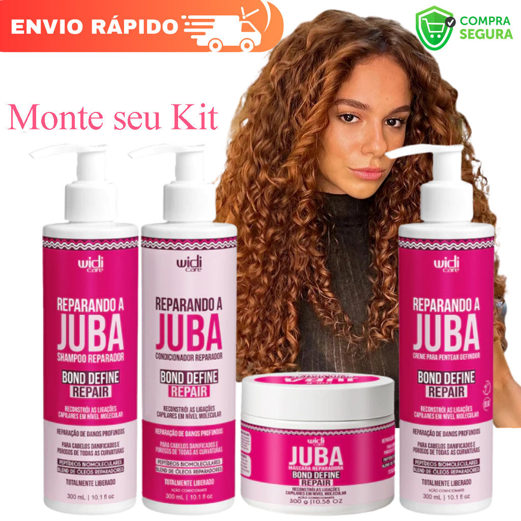 O Kit Juba Bond Define Repair é o tratamento completo que atua na reconstrução profunda da fibra capilar, ideal para cabelos danificados. Com tecnologia biomolecular e um poderoso blend de óleos, ele devolve saúde, brilho e resistência aos fios desde a primeira aplicação.Seu kit completo Widi Care:Shampoo Widi Care Juba Bond Repair 300mlMáscara Widi Care Juba Bond Repair 300gCondicionador Widi Care Juba Bond Repair 300mlCreme Para Pentear Widi Care Juba Bond Repair 300mlSeus benefícios Widi Care:• Limpeza delicada e condicionamento reparador: o shampoo limpa sem agredir, enquanto o condicionador desembaraça e sela, promovendo um tratamento completo desde a primeira lavagem.• Máscara Bond Repair: Tratamento intensivo que penetra profundamente nos fios para restaurar, fortalecer e nutrir.• Definição prolongada: o creme pra pentear é o finalizador ideal para modelar, reduzir o frizz e fortalecer seus fios. Garante cabelos hidratados e definidos do jeito que você tanto ama.• Tecnologia Peptídeos Biomoleculares: que reconstroem ligações internas dos fios, reforçando-os contra novas agressões.Shampoo Widi Care Juba Bond Repair 300mlAplique sobre os cabelos molhados, massageando o couro cabeludo, e friccione para fazer a espuma cremosa. Deixe agir enquanto espalha a espuma por todo o comprimento do cabelo. Se necessário, repita a aplicação. Enxágue bem, retirando todo o produto e a seguir aplique a Máscara Juba Bond Define Repair.Máscara Widi Care Juba Bond Repair 300gApós o uso do Shampoo Juba Bond Define Repair, aplique a Máscara Juba Bond Define Repair em todo o comprimento, até as pontas. Deixe o produto agir de 3 a 5 minutos e enxágue abundantemente.Condicionador Widi Care Juba Bond Repair 300mlApós lavar os cabelos com o Shampoo Juba Bond Define Repair, aplique o Condicionador Bond Define Repair no comprimento e nas pontas. Massageie suavemente, deixe agir por alguns instantes e enxágue abundantemente.Creme Para Pentear Widi Care Juba Bond Repair 300mlCom os cabelos úmidos, divida-o em mechas finas e inicie o processo pela parte da nuca para facilitar a aplicação. Coloque uma quantidade suficiente do Creme para Pentear Bond Define Repair nas mãos e aplique nos cabelos fazendo fitas em mechas finas. Repita o processo por todo o cabelo e depois friccione as mechas de baixo para cima para estimular a definição. Deixe secar naturalmente ou com a ajuda de um difusor.Uso diário – sem enxágue.Dica para arrasar: Para resultados ainda mais incríveis, use a linha completa Juba Bond Define Repair.