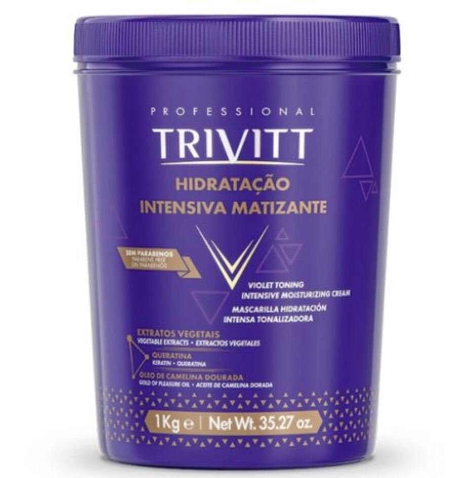 Combo HIDRATAÇÃO Intensiva Matizante CONTÉM: 1un Shampoo Matizante Trivitt 1lt 1un (pote) Hidratação Intensiva Matizante 1kg 1un Fluido para Escova Matizante 200ml   Shampoo Matizante é indicado para cabelos loiros pois neutraliza o amarelamento dos fios com o resgate do brilho platinado e proteção antioxidante. Contém ativos que conservam o tom loiro luminoso e acinzentado ao mesmo tempo em que protege das agressões que causam a oxidação do pigmento no interior dos fios e previne o surgimento de manchas.   Hidratação Intensiva Matizante é um tratamento imediato para cabelos loiros que neutraliza o tom amarelado dos fios, traz de volta o brilho platinado, deixa o toque macio e a cor com proteção prolongada. Penetra pela fibra capilar e elimina o amarelamento causado pela oxidação do pigmento no interior dos fios com o resgate do efeito loiro acinzentado desejado.   O inovador Fluído para Escova Matizante chegou para complementar a linha e oferecer o arsenal completo de tratamento dos fios louros, com a garantia de tons platinados, saudáveis, hidratados e cheios de vida. Facilita a escovação, evita pontas duplas e proporciona matização instantânea, neutralizando os tons amarelados e alaranjados.  Emulsão de Silicone: Com nova e avançada tecnologia para o cuidado capilar, esse ingrediente é formado por estruturas que auxiliam a ancoragem nos cabelos. Oferece condicionamento superior Suaviza as cutículas, garantindo sensorial agradável à úmido e à seco Forma um filme protetor, que previne e repara pontas duplas Proporciona proteção térmica Promove brilho extremo É de fácil remoção (não provoca “build-up”, ou seja, não acumula nos fios) Diminui o tempo de secagem, pois expulsa rapidamente a água que envolve os cabelos após a lavagem   Todos os produtos desse kit têm em sua formulação: Ativos: Extratos Vegetais: extraídos do Arroz, Soja e Extrato de Palma Forte ação antioxidante Mantém as cutículas íntegras   Queratina: os cabelos são constituídos principalmente por essa proteína, composta por uma sequência de 18 aminoácidos interligados por pontes de hidrogênio, dissulfeto (enxofre) e salinas. Como é hidrolisada, apresenta baixo peso molecular, o que facilita sua penetração através das cutículas. Deposita-se sobre as regiões que apresentam danos, restaurando os fios Reequilibra o teor de água e a distribuição de cargas elétricas da fibra capilar Após penetrar através das cutículas, mantém as mesmas seladas (pH adequado para o fechamento das escamas)   Óleo de Camelina Dourada: ingrediente de origem 100% vegetal, obtido da planta “Gold of Pleasure” (Camelina sativa). Fornece a proporção ideal de Ômegas 3 e 6 para restaurar o teor lipídico (oleosidade natural) da fibra capilar Combate o toque áspero dos cabelos ressecados e fragilizados Recupera a elasticidade e flexibilidade dos fios     Modo de Uso:  Lave os cabelos com uma quantidade suficiente de shampoo pós quimica  nos cabelos úmidos, massageando suavemente os fios. Enxágue e repita a aplicação. Aplique a Hidratação Intensiva sobre os cabelos limpos e úmidos, do comprimento às pontas, massageando suavemente mecha por mecha. Após 5 minutos, enxágue. Agite o Fluido para escova matizante antes de usar, borrife sobre os cabelos limpos e úmidos, mantendo a embalagem na posição vertical e a uma distância de aproximadamente 15 cm. Proceda à escova com secador. Se preferir, ainda no lavatório, aplique pequenas quantidades do produto em todos os fios para um efeito uniforme. Retire o excesso. Em seguida, proceda à escova.
