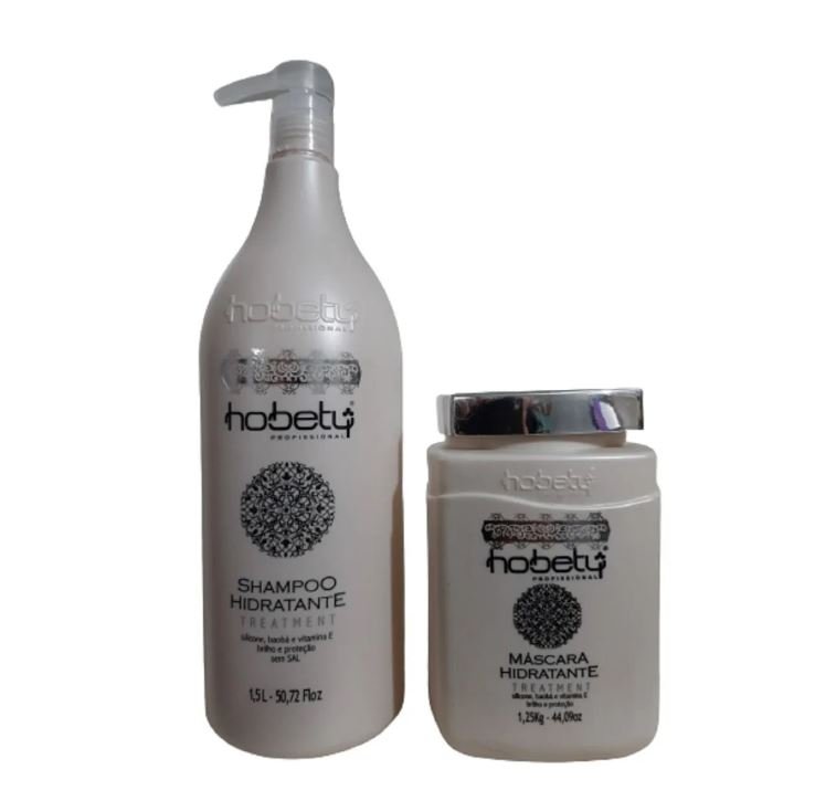 Shampoo Hidratante Treatment Hobety Profissional foi desenvolvido para os tipos de cabelos. Sua fórmula balanceada contém Silicones Nobres, Manina E e Extrato de Baobá, que promovem ação hidratação, antioxidante, proteção contra a ação de agentes químicos e radiação UV. A delicada fragrância de Erva Doce permanece sutilmente após o uso. A textura cremosa e perolizada proporciona alto rendimento e a experiência de frescor e bem estar.MODO DE USAR: Aplicar sobre os cabelos molhados, massageando o couro cabeludo com movimentos circulares e enxaguar. Repetir a operação, retirando o excesso. Proporcione máxima hidratação e brilho com ação imediata e resultados prolongados utilizando, na sequência, a Máscara Hidrante TreatmentA Máscara Hidrante Treatment Hobety Profissional proporciona aos cabelos hidratação profunda, brilho e proteção, por possuir em sua fórmula concentração de Vitamina E e Extrato de Baobá. A delicada fragrância de Erva Doce permanece sutilmente após o uso. A textura cremosa e perolizada proporciona alto rendimento e a experiência de frescor e bem estar.   MODO DE USAR: Aplicar sobre os cabelos úmidos e lavados, massageando com movimentos suaves da raiz até as pontas. Deixe agir por alguns minutos e enxágue retirando todo o excesso.