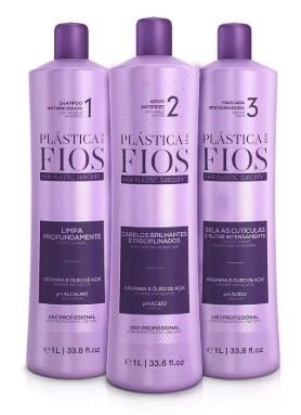 Cadiveu Professional Plástica dos Fios Profissional  É um tratamento intensivo que reduz o volume, elimina o frizz e proporciona fios lisos e controlados por até 3 meses. Nutre e hidrata profundamente os fios além dar um brilho incrível e fortalecer a estrutura, evitando a quebra.   ContémPasso 1 Shampoo Pré-Selagem 1000ml: Limpa profundamente os fios e ajuda a abrir a cutícula facilitando a penetração dos princípios ativos do tratamento.   Passo 2 Selagem Térmica 1000ml: Com os outros produtos, promove o efeito liso natural de longa duração nos fios e deixa os cabelos brilhantes e sem frizz.    Passo 3 Máscara Selante 1000ml: Promove a hidratação máxima dos fios reduzindo o frizz e acentuando o efeito liso.   AçãoTratamento constituído por Arginina, Extrato de Açaí e Ácido Acético (pH ácido).   Extrato de Açaí: rico em nutrientes como Vitaminas, Açúcares Essenciais e Óleos Emolientes. Sua ação antioxidante e protetora promove uma regeneração completa dos fios, hidratando-os de forma eficiente e prolongada.   Aminoácidos: equilibram a estrutura dos fios das agressões causadas pelo uso excessivo de secadores e chapinhas. Aumenta a sua maleabilidade e elasticidade, deixando o cabelo mais suave e extremamente fácil de pentear.   Fitonutrientes: Nutrem e protegem os fios, ajudando a regenerar as partes danificadas e desgastadas.   Shampoo com Ácido Acético: por ter pH ácido, pode causar irritação e descamação no couro sensibilizado. Por esta razão recomendamos não aplicar em gestantes, pessoas com couro sensível e crianças até 12 anos.   Obs: Oferece cerca de 35 aplicações. Certificado Micro Quality Labs (EUA) e pela Anvisa. O efeito é prolongado com o uso dos produtos de manutenção Plástica dos Fios Cadiveu.