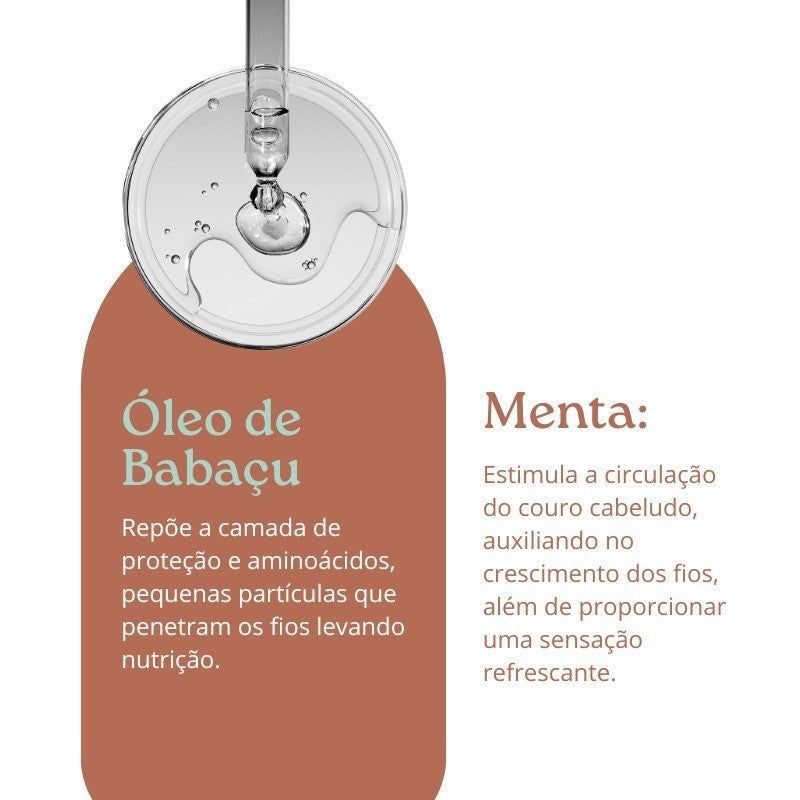 Sua fórmula equilibrada, com Óleo de Babaçu e Menta, nutre e acalma a raiz, mantendo os cabelos saudáveis da raiz às pontas.
