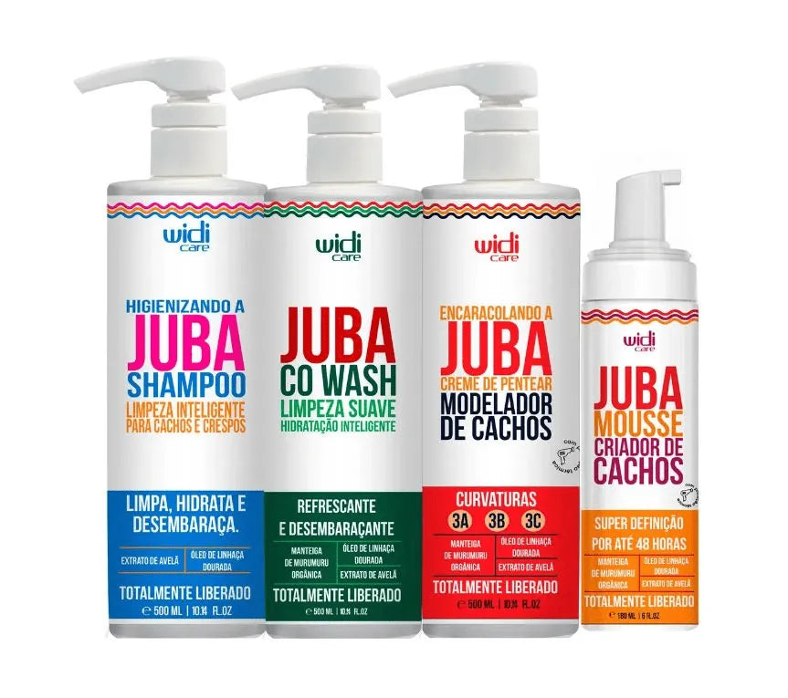 UBA MOUSSE CRIADOR DE CACHOS 180mlJuba, jubinha ou jubão esse incrível produto veio para fazer a sua vida ficar mais simples e sua madeixa mais plena. Já cansou de procurar o produto que vai deixar sua cabeleira super definida e te permitir um incrível day after? JUBA MOUSSE CRIADOR DE CACHOS ajuda a definir e manter os cachos sem frizz durante todo o dia. O mousse condiciona e proporciona uma incrível definição, além de contar com proteção térmica. Cabelos incrivelmente lindos, definidos, macios e sem frizz.GUIA JUBA: Coloque uma pequena quantidade na palma da mão, aplique nos cabelos úmidos friccionando da nuca para frente, raiz às pontas; Modele com difusor ou deixe secar naturalmente. Para um efeito ainda mais definido, seque com difusor de baixo para cima.ATIVOS l FUNÇÕES:Manteiga de Murumuru Orgânica - Promove ação hidratante e restauradora dos fios.Óleo de Linhaça Dourada - Rica em ômega 3 e 6, proporciona condicionamento e brilho acetinado.Extrato de Avelã - Possui ação emoliente, atuando no interior da fibra capilar.ENCARACOLANDO A JUBA CREME DE PENTEAR 500mlCansados dessa história de controle dos cachos, Encaracolando a Juba creme de pentear traz para você que é cacheada e ama sua cabeleira volumosa, a linha Juba que define, nutre e hidrata e empodera suas madeixas com auxílio dos ativos: manteiga de murumuru orgânica, óleo de linhaça dourada e extrato de avelã. Mara, né? Agora solte sua juba, ame seus cachos e sinta-se plena. GUIA JUBA: Com o cabelo úmido, divida-o em mechas finas e inicie o processo pela parte da nunca para ficar mais fácil a aplicação. Coloque uma quantidade suficiente do Encaracolando a Juba Creme de Pentear nas mãos e aplique nos cabelos fazendo fitas (mechas finas). Repita esse processo por todo o cabelo e depois amasse as mechas de baixo para cima para ajudar na definição. Deixei secar naturalmente ou com ajuda de um difusor.Shampoo Juba 500ml: Limpeza inteligente para cachos e cresposO Higienizador a Juba é um shampoo com tecnologia única, afinal ele tem o poder de limpar, fazer espuma e não embolar. O único shampoo que foi feito pensando especialmente nas curvaturas. Com sua espuma super cremosa, você já sente sua Juba hidratada e nutrida desde a primeira aplicação.Guia Juba de uso: Aplique sobre os cabelos molhados, massageando o couro cabeludo e friccione para fazer a espuma hidratante. Deixe agir enquanto espalha a espuma por todo o comprimento do cabelo. Enxágue bem, retirando todo o produtoCo-wash Juba 500ml: Limpeza suave e hidratação inteligente.JUBA CO WASH é um creme de limpeza leve, feito especialmente para deixar o cabelo mais emoliente e solto. Seu maior benefício é o poder de condicionar enquanto limpa. Possui ativos 100% vegetais e higieniza os fios preservando a oleosidade natural, tornando sua cabeleira mais macia e bonita.Este kit contém:01 HIGIENIZANDO A JUBA 500g01 JUBA MOUSSE CRIADOR DE CACHOS 180ml01 ENCARACOLANDO A JUBA CREME DE PENTEAR 500ml01 CO WASH JUBA 500g